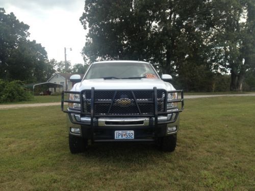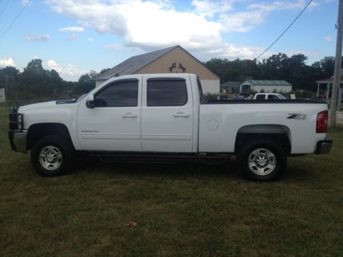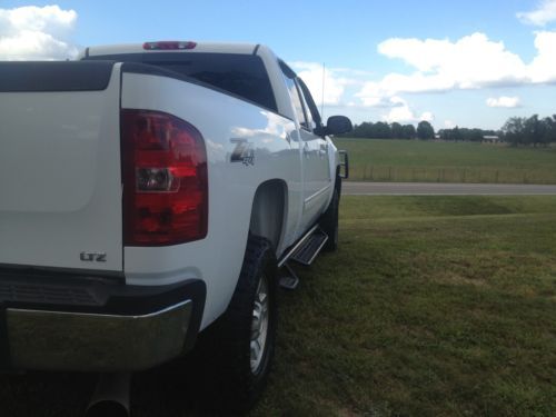 2010 Chevrolet Silverado 2500 HD LTZ, white, 4-door crew cab, 6.6 L Duramax diesel with Allison automatic transmission. The truck is just breaking in at 73,000 miles. I am the second owner of the vehicle. I bought it in Texas from a dealer. The truck runs perfect and has no scratches below the clear coat. There are a few minor scratches here and there, but you have to look for them to see them. There are no dents, at all! The truck has a Ranch hand brush guard with powder coated step rails. It also has a spray in bed liner and tinted windows. The back seat has a $400 Hatchie Bottom camouflage seat cover. I have not had a single problem with the truck. It has been serviced regularly. I run Rotella oil and had the differential fluids replaced with Royal Purple fluid. The fuel filter has been changed regularly as well.