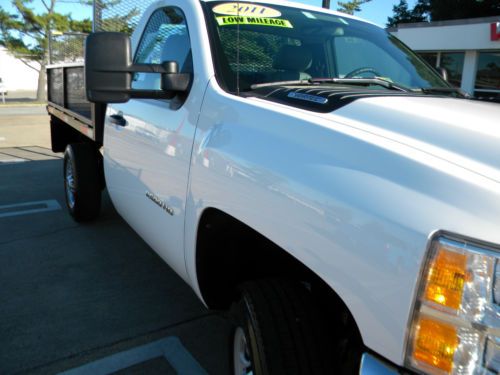 WE ARE OFFERING A 2011 CHEVROLET SILVERADO 2500HD FLATBED WITH ONLY 11,000 MILES. THIS IS A OFF LEASE UNIT WITH A EXELLENT SERVICE HISTORY. THE ENGINE RUNS SMOOTH WITH NO LEAKS AND THE TRANSMISSION SHIFTS PERFECT WITH NO HESITATIONS. OPTIONS ON THIS 2500HD INCLUDE: 6.0 V-8 GAS ENGINE, AUTOMATIC TRANSMISSION,POWER STEERING, DUAL AIRBAGS, MANUAL LOCKS,TILT WHEEL, MANUAL MIRRORS, ICE COLD AIR CONDITIONING, 8 FT LANDSCAPE FLATBED BODY, STEEL RALLY WHEELS, REAR RAMPS, HEAVY DUTY COOLING PACKAGE, CHROME BUMPER, HEAVY DUTY MIRRORS, 2 WHEEL DRIVE, TINTED GLASS AND RUBBER FLOOR COVERING.THIS 2500 IS COVERED UNDER THE FACTORY 3 YEAR/36,000 MILE BUMPER TO BUMPER WARRANTY AND THE 5 YEAR/100,000 MILE POWERTRAIN WARRANTY. WE ARE A VIRGINIA DEALER#4137, SERVING OUR AREA SINCE 1996. ALL RETAIL SALES ARE SUBJECT TO A $ 250.00 PROCESSING FEE TO COVER TEMP. TAGS AND TITLE TRANSFER. THIS CHEVY HAS BEEN VIRGINIA STATE INSPECTED, SERVICED AND IS READY FOR DELIVERY! IF YOU HAVE ANY QUESTIONS, PLEASE CALL 1800 569 7278 OR 757 461 7552. THANKS FOR LOOKING AND GOOD LUCK WITH YOUR SEARCH!