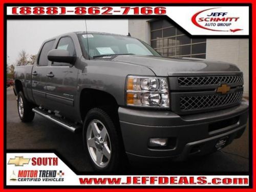 2014 SILVERADO 2500 4WD LTZ CREW CAB. SEATS, HEATED/COOLED FRONT, DURAMAX 6.6L V8 TURBO DIESEL, ALLISON 6-SPEED AUTOMATIC TRANS, LTZ PLUS PACKAGE, 20' FORGED POLISHED ALUM WHEELS, REAR VISION CAMERA SYSTEM, CAMPER/5TH WHEEL TRAILER WIRING, 6' TUBULAR CHROMED ASSIST STEPS, Z71 APPEARANCE PACKAGE, OFF ROAD SUSPENSION INCLUDING. Now that you have found a vehicle that interests you, please call or e-mail us for availability and to set up a time to come in to see it. Why buy from us? Jeff Schmitt Auto Group is now 1 of only 27 MOTOR TREND CERTIFIED dealers in the United States!! All of our select Motor Trend Certified Vehicles include: 1 year EasyCare Dent Repair, 1 year EasyCare Keycare, 360 minutes or 1 year of EasyCare Personal Assistant, Preferred Customer Program, 72 Hour Exchange Policy, and our Best Value Guarantee! E-mail or call us to check availability!!! See this Silverado 2500HD at Jeff Schmitt Chevrolet in MIAMISBURG!!!! ***Prices do not include tax, title, license, documentation fees, or any dealer add-ons. Advertised sale price may include rebate or incentive. See dealer for details.*