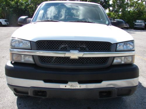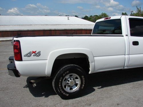 IF YOU OR YOUR COMPANY IS IN THE MARKET FOR A LOW MILEAGE CLEAN EXCELLENT MECHANICAL TRUCK THIS IS ONE YOU WILL NEED TO CHECK OUT. THIS A 2004 CHEVROLET SILVERADO 2500HD 4X4 CREW CAB TRUCK WITH AN 8 FT BED. THIS TRUCK HAS A VERY DESIRABLE 8.1 8100 VORTEC GAS ENGINE AND THE ALLISON TRANSMISSION 5 SPEED AUTOMATIC. THE MOTOR IS NOT AVALIABLE IN THE NEW BODY STYLE CHEVROLET TRUCKS. IT IS BECOMING DIFFICULT TO FIND THESE ENGINES WITH LESS THEN 200,000 MILES. THIS ONE HAS ONLY 106000 ACTUAL MILES. THIS TRUCK RUNS STRONG AND WITH THE DYNAMIC DUO DRIVE TRAIN COMBINATION OF THE 8100 VORTEC AND THE ALLISON TRANSMISSION THIS TRUCK WILL PULL ANYTHING THE NEWER DURAMAX DIESELS WILL PULL. THERE ARE NO CHECK ENGINE LIGHTS OR KNOWN MECHANICAL ISSUES. THERE ARE NO FLUID DRIPS WHEN PARKED ON DRY PAVEMENT. THE INTERIOR CAB IS VERY CLEAN. NICE DELUXE SILVERADO INTERIOR WITH LIGHT WEAR ON THE DRIVERS SEAT EDGE. FOLD DOWN CENTER SEAT. THE INTERIOR COMPARTMENT DOES NOT OPEN ON THE SEAT FOLD DOWN SECTION. THE DRIVERS SEAT IS POWER AND FUNCTIONS IN ALL POSITIONS. THE TRUCK IS EQUIPPED WITH POWER WINDOWS, POWER LOCKS, POWER MIRRORS WITH TURN SIGNALS, AM-FM RADIO, AIR CONDITIONING THAT IS TO COLD RUN ON HIGH, FACTORY TOW PACKAGE WITH HITCH, AND REAR AXLE 4:10 RATIO WITH LOCKING DIFFERENTIAL. THE BODY PANELS HAVE NICE SHINEY PAINT. NO RUST OR ROT ISSUE. A FEW DINGD/DENTS SCRAPES , SCRATCHES AND CHIPS. FOR THE MOST PART NORMAL COSMETICS ON A USED TRUCK. THERE IS A DENT ON TOP OF THE REAR PASSENGER BED CORNER. THE TAILGATE IS TIGHT ON THAT SIDE BUT OPENS AND CLOSES. THE FRONT DRIVERS BUMPER HAS A BENT BUMPER CORNER. THE TIRES ARE EXCELLENT AND PROBABLY ABOUT 70 PERCENT TREAD. THE 4X4 TRANSFER CASE IS EASY TO SHIFT AND FUNCTIONS PROPERLY IN BOTH HIGH AND LOW GEARS. OVERALL EXCELLENT TRUCK READY TO DRIVE ANY DISTANCE. OUR SPECIAL INTERNET PRICE IS VERY REASONABLE AND EVEN IF YOU ARE TO FAR AWAY TO COME SEE THE TRUCK YOU CAN TRANSPORT AND STILL SAVE THOUSANDS OVER SIMILAR TRUCKS. CALL 859-588-1485 FOR QUESTIONS.