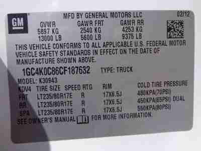 2011 chevrolet 3500 hd silverado 12' box with ramp low miles