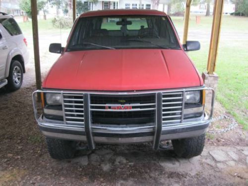 A beast of a Suburban. Mechanically it runs, shift and drives VERY strong, it's an ex-county K9 unit so you know all servicing was done properly. I bought this as a toy to haul and play with, but it has been my daily driver for almost a year now. It needs some cosmetics as you can see in the pictures. The front bench seat torn by driver. I started taking the rear headliner and some of the rear interior trim pieces out to fix up the interior alittle (still have pieces I took out in my shed) but decided to stop incase someone wanted something different.. It needs paint, body has no dents (a few scratches), is very straight. It was originally paint the 2-tone red on bottom/white on top when it was used for the county and the guy I bought it from painted it all red but used cheap paint. Ice cold AC and red hot heat. It has a Viper alarm and remote start (came in very handy during this winter!!). I just installed a new CD player so I can use my iPod, the chrome nerf bars and new tail lights. I drive this daily on the interstate and it does 80 no problem. This is a VERY cool SUV to either fix up or would be an awesome work truck. This is for sale locally also, so I might end auction early if it sells. Feel free to email me any questions and leave your cell number and I'll get back to you. It's listed as a Chevrolet Suburban but it's a GMC. Really no difference but a couldn't figure out how to change it once I started. |