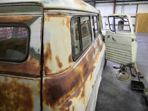1957 Chevy Suburban, this is a roller, that has a Arizona title. There is a 4-speed transmission sitting in the back, it has clam-shell doors, roof is dent free, very little rust. Has all glass,but needs all to be replace. Some extra parts like Radiator,Grill,driveshaft,included.Pictures tell the story. Located in Prescott Az. Availible locally.Any questions or more pictures call Greg 928-606-5847