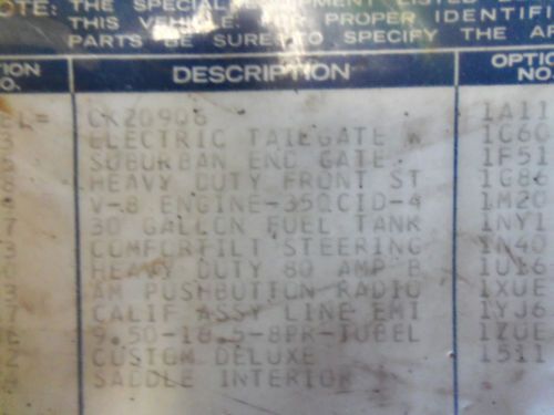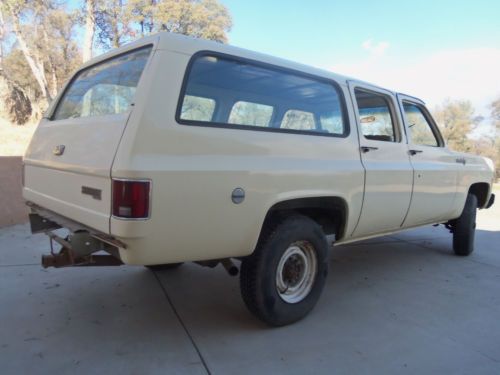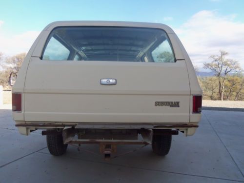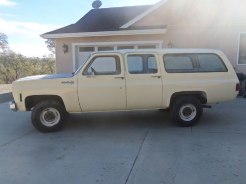 Up for bidding is a well equipped 1973 4x4 Suburban. This was in the process of being restored in 1985 and the owner passed away. It has been in a garage ever since. It was professionally painted and new carpet and seat upholstery have been installed. This is super clean with no rust. It will need a hood (the one included is bad and is there to keep engine covered), rubber seals, dash pad, back bumper, lenses, and probably some small items to get it all back together. The 35 engine will probably need to be replaced as it is seized from setting for over 25 years. There is a small dent below the marker on the right front fender. The tires have great tread, but are over 25 years old. There are a couple of small chips in the paint and a chip in a fin on the grille. It has ac, but in unknown working condition. The axles are dana 44 big hub and corp14 bolt with 8 lugs and 4.10 gears. The transmission and transfer case are sm465 and np205. There is a 4 speed tilt column that is tight and a factory tachometer that is untested. All of the glass is there, but not installed This is a great rust free starting platform if you want a nice 4x4 suburban that just needs the interior finished and the engine replaced. Buyer responsible for shipping and I will cooperate with your shipper to make it as easy as possible for delivery. Please do not bid if you have a zero feedback history without contacting me first. I will not release the truck until your funds have cleared. Paypal for the deposit and cash or cashiers check for the balance. If you have any questions, please call or text me at 530-370-9200...text is best as my phone service area is bad Thanks, Ray |