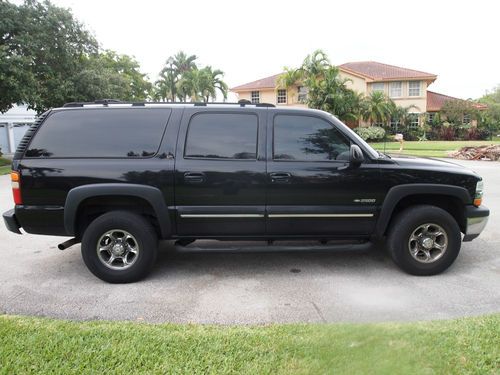 2001 CHEVROLET SUBURBAN 2500 LT SERIES SMOOTH AUTO-RIDE WITH VORTEC 8100 (8.1L) 4WD (4X4). THIS LT SERIES HAS ALL THE BELLS AND WHISLES, POWER EVERYTHING, CAPTAIN CHAIRS IN FRON AND BACK, AND FOLD DOWN BENCH SEAT IN REAR, ALL LEATHER SEATS, POWER SUN ROOF, HEATED SEATS, TINTED WINDOWS, JENSEN AM/FM/DVD/MP3 RECEIVER W/7" LCD DISPLAY SCREEN IN FRONT AND MONSTER SIZE LCD SCREEN IN BACK. ENGINE METICULOUSLY MAINTAINED, SYNTHETIC OIL CHANGES AND PREMIUM GASOLINE USED ONLY, EQUIPED WITH 10-PLY HEAVY-DUTY LT265/75R16 MICHELIN TIRES, AMERICAN RACING CHROME RIMS, HEAVY-DUTY TOWING PACKAGE, WESTIN STEPS, ALL 4 BRAKES SERVICED LAST YEAR, THIS YEAR REPLACED THE RADIATOR, WATER PUMP, ENGINE COOLANT CONTAINER, AND ALL HOSES, ETC. RUNS SMOOTH AND STRONG.
