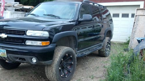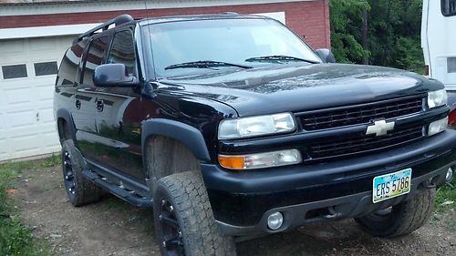 2001 Chevy 1500 Z71 Suburban 4x4 with 140,000 miles with 4" suspension lift and 33x12.5x20 tires. Runs and drives does need a few things: Tires, alignment, missing since we got it the back window buttons and the TV. This is a rebuilt salvage vehicles has been my personal vehicle for the last 2.5 years and was driven daily. Clean inside and out no rust. If you are not happy when you get here we will give you back your deposit. Please ask any questions before bidding. For Sale Locally reserve the right to cancel auction at anytime.