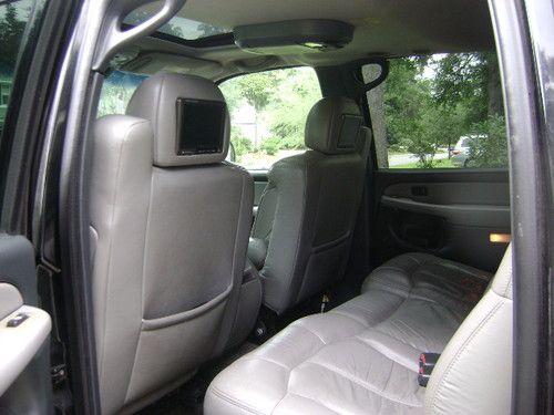 This thing is loaded, lifted, big & bad!!! Black over grey leather with black carpet. 3 rows of seats. 3 TV screens, HD tow package, Dual AC, Heated/Memory seats, Moonroof, too much to list. The truck has been professionally lifted with a 4" lift kit from lift kit warehouse (over $2k) it rides like a dream..no creaks, rattles, harsh ride, etc..that you may expect from a lifted vehicle...this one rides like its stock! It rolls on WELD WHEELS wrapped with LT285/75/R16 General Grabber AT 2's that are like brand new (almost another $2k). The paint is original & in very good condition having minor chips & scratches that are average for its age. There is one spot on the hood about the size of a silver dollar that could use some help. The body is near perfect with 1 small dent underneath the drivers taillight right by the bumper that's hardly noticeable. Mechanically it runs PERFECT!!! No leaks or noises. The carpet is in great shape, no cracks on the dash or door panels, seats are average..showing cracks & wear on the outer bolsters but are NOT ripped up or torn in anyway. There is a video system alpine I think, with 3 TV Screens..1 dropdown & 2 in the headrests. I don't know for sure if it works as I have no clue how to turn it on or use it. Dual A/C that blows ICE COLD but for some reason it blows out the top, bottom or sides perfectly but will not switch over to the front vents when you turn the knob. The only other issue is that the passenger side window will not go down..you can hear the motor move just fine but the window doesn't..may be off the track. I plan on addressing that if I have the time to before it sells. Check my feedback...been on here for years & never a problem..I try to be as honest & descriptive as I can so please bid with confidence & bid to win!! Truck is for sale locally in Savannah, GA so I reserve the right to end this auction at anytime.