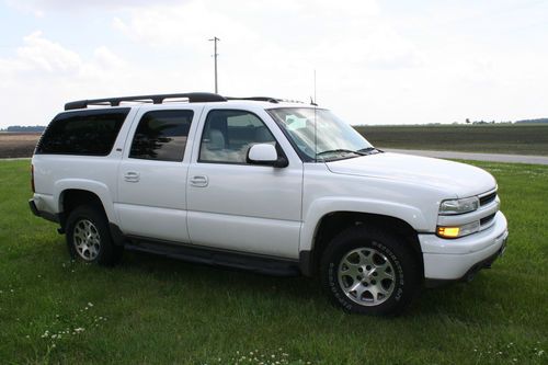 Summit White 2005 Chevy Suburban 1500 Z71 off-road pkg, air conditioning (dual controls for both front & rear), cruise control, AM/FM stereo, 6 disc cd, dvd system (can watch a movie in the rear with headphones and still have driver able to listen to the radio or can play dvd through the truck speakers) , leather, alloy wheels, 4 brand new tires, abs (4-wheel), power windows, power steering, dual air bags, sun roof (sliding), power door locks, tilt wheel, power/heated seats (however the driver heater doesn't stay on long) Remote start, keyless entry.