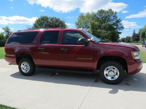 5 DAY AUCTION NO RESERVE!!! LAST BIDDER BUYS!!! 2007 CHEVROLET SUBURBAN 2500 LS 4X4, YOU WOULD BE PROUD TO OWN THIS ONE. ONE DRIVER, ONE OWNER, NON SMOKER, NO PETS IN THIS ONE. PASSENGER AND BACK SEATS WERE NEVER SAT IN. THIRD ROW COMPATIBLE. IT WAS OWNED SINCE NEW BY THE STATE OF MICHIGAN, DEPT. OF FISH/GAME, AND IT WAS USED FOR ADMINISTRATIVE DUTIES ONLY SUIT AND TIE. ALWAYS KEPT CLEAN. ALL HIGHWAY MILES AND METICULOUSLY FLEET MAINTAINED SINCE NEW. THE TIRES ARE LIKE NEW E RATED 10 PLY. IT RUNS/DRIVES AS GOOD AS IT LOOKS. DON'T LET THE MILES SCARE YOU AS IT RUNS/DRIVES LIKE IT HAS HALF THE MILES. 3K OIL CHANGES AND ALL FLEET MAINTENANCE ON TIME SO NO WORRIES HERE. ICE COLD AIR CONDITIONING AND ALL POWER OPTIONS FUNCTION AS THEY SHOULD. THE ENGINE RUNS OUT PERFECT AND THE TRANSMISSION SHIFTS OUT SMOOTH, NO DEFECTS. INTERIOR/EXTERIOR ARE VERY CLEAN, SEE PICS. HAS TYPICAL NICKS/DINGS/SCRATCHES FOR AGE USE BUT LOOK AT THE PICTURES AS THIS IS ONE SHARP TRUCK. WHEN YOU DRIVE THIS SUBURBAN YOU WILL KNOW THAT IT WAS NEVER ABUSED AND IT IS ALL HIGHWAY USE. NO WEAR, AND WAS VERY WELL MAINTAINED. DON'T DELAY AS IT IS VERY HARD TO FIND A NEW BODY SUBURBAN 2500 4X4 WITH THIS COLOR COMBINATION AT NO RESERVE. THIS SUV HAS ICE COLD AIR CONDITIONING, AUTOMATIC TRANSMISSION, 4X4, TILT STEERING WHEEL, FACTORY AM/FM/CD STEREO, FULL SIZE SPARE, FACTORY TINTED WINDOWS, FACTORY RUNNING BOARDS, FACTORY TOWING PACKAGE, ETC. IT COMES WITH TWO ORIGINAL KEYS/REMOTES. IT HAD RADIO EQUIPMENT THAT WAS REMOVED AND THERE ARE A FEW SMALL SCREW HOLES IN THE DASH, SEE PICS. THE SPOTLIGHTS WORK AND FUNCTION PROPERLY. ALSO, THE TPMS (TIRE PRESSURE MONITOR SENSORS) NEED TO BE RESET BECAUSE IT GOT NEW TIRES. PLEASE HAVE YOUR FINANCING IN ORDER PRIOR TO BIDDING. ZERO OR NEGATIVE FEEDBACK BIDDERS MUST CONTACT ME PRIOR TO BIDDING OR YOUR BID WILL BE CANCELLED. I AM SELLING THIS SUV SO PLEASE FOLLOW THESE SIMPLE INSTRUCTIONS. ANYBODY THAT HAS SOLD ON EBAY, YOU KNOW WHAT I MEAN. THIS IS A NO RESERVE AUCTION, THE HIGH BIDDER OWNS THIS BEAUTIFUL SUBURBAN 2500 4X4. CALL KEN AT 586-365-8902 IF YOU HAVE ANY QUESTIONS. Listed by a licensed MI dealer. $99 doc fee on all sales. Michigan residents pay 6% sales tax and applicable title/plate fees. $300 immediate deposit due via paypal, Right At The End Of The Auction, Same Night, and balance is due in 5 days. Balance can be paid by cash in person at delivery, bank to bank wire or cashiers/certified check. If payment is made with cashiers/certified check, we will hold the title until the funds clear. Fly into DTW (Detroit Metropolitan Wayne County Airport), we will pick you up and provide you with a temporary tag to drive home on. Thank you.