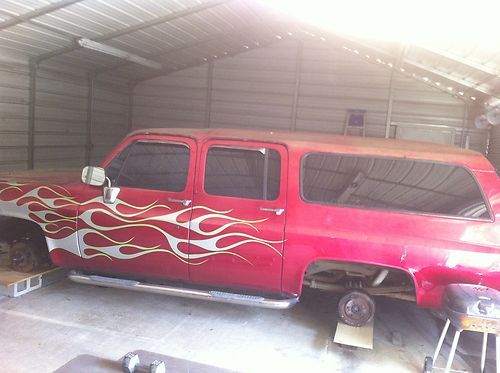 One of a kind chevy suburban truck has candy customized paint and designer interior I took rims music ect. Out to redo but my wife is now expecting truck is sold as is 350 motor and 700 trans included truck is a beauty but needs work buyer will be responsible for pick up my have tower. Truck does crank on the dime. Thanks and have a blessed bid.
