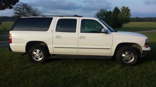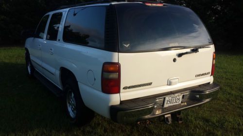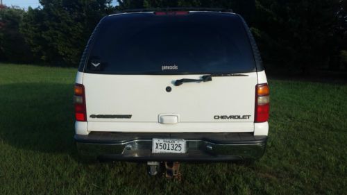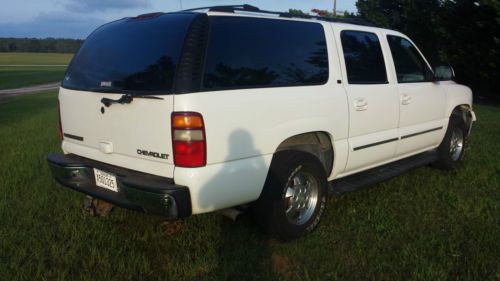 IF YOU WANT A SUBURBAN ON A BUDGET THAT YOU CAN DRIVE HOME, YOU HAVE FOUND IT. OVERALL THIS SUBURBAN IS IN GREAT SHAPE. IT IS A REPO. TITLE IS CLEAR AND IN OUR POSSESSION. RUNS AND DRIVES GREAT, TIRES ARE AN EASY 80%. MECHANICALLY I FEEL THAT THIS VEHICLE IS VERY SOUND, I PERSONALLY DROVE IT 30 MILES TO GET IT HERE. I DON'T SEE ANY REASON YOU CANNOT FLY IN AND DRIVE THIS SUBURBAN HOME ANYWHERE! THE SUNROOF IS BINDING ON IT BUT IT DOES WORK, JUST NEEDS ADJUSTING, THE HEADLINER PIECE THAT GOES ON THE SUNSHADE FOR THE SUNROOF HAS COME UNGLUED, I HAVE AN UPHOLSTERY SHOP WHO SAID $50 WILL FIX IT BUT I AM NOT WAITING ON HIM 2 WEEKS TO FIT IT IN HIS SCHEDULE... YES, IT HAS THE THIRD ROW SEAT.