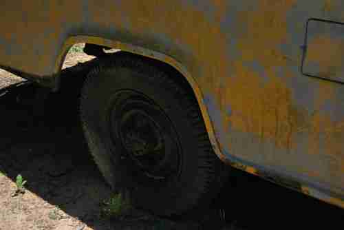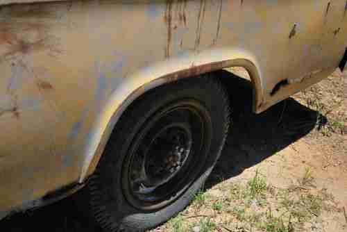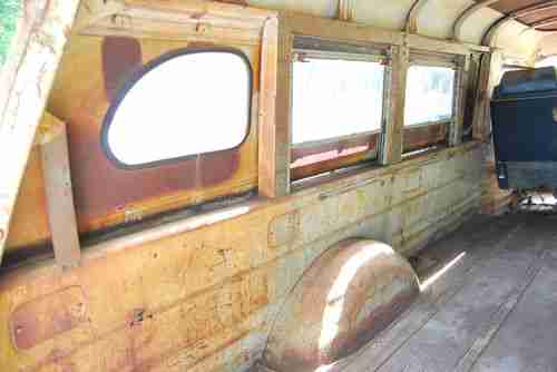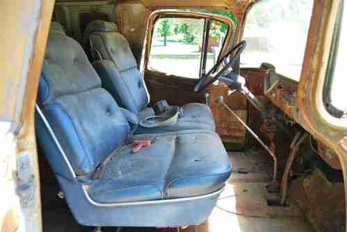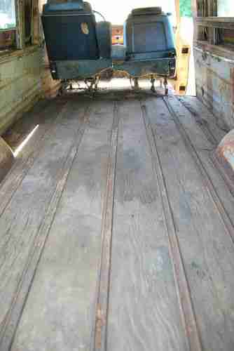 Saved this from a scrap yard here in Mississippi. Appears to have been in Mississippi for quite a long time as the license plate lists a local county but no longer has any paint on it. I am not extremely well educated on these models, but it appears to be a 99% original GMC panel wagon. Straight 6 and a manual 4 speed. Engine was switched from generator to alternator. Since the panel wagon came from the factory with solid sides, I believe the windows were added later in it's life. However, the work was very well done. Windows slide down to open and move freely. Body is extremely straight and solid considering the year and circumstances (found in a scrap yard) with the obvious exception of the driver side door. Appears to be original paint...possibly Coronado Yellow. Areas of rust through are shown in pics along with drivers side step-up is completely gone (pic shown from below). Wood and slide rails in rear appear to be original and in solid condition. Front floor pans have been repaired - again pretty good work. Frame is original, unmolested and in great condition. Only non-original parts appear to be alternator, rear windows, floor pan patch and bench seat. Tires hold air...this is a free rolling truck.