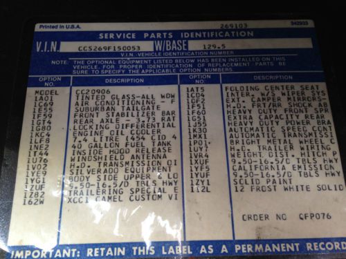 A real survivor! This is a stock vehicle that is unmolested and original. A 35 year old truck in excellent condition. Special Trailering Package, Smooth 454 7.4L V-8, Heavy Duty Suspension, Brakes, and Cooling. Beautiful interior. The headliner is perfect, the seats are comfy, and the carpet shows little wear. This is a Northern California survivor that was Ziebarted (rust proofed) when new. The engine is strong and the transmission shifts smoothly. The A/C blows ice cold and has been covered to R434. Easily passed CA smog. The pictures tells the story. The body, please note two small dents in pictures, is straight and solid. I get great comments whenever I drive her! Everything works and needs nothing. No Reserve! Sold As Is Where Is |