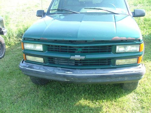 I'm selling my Tahoe because I found something smaller.I've owned it 7 years,been a really good truck.Everyting works but the A/C.Compressor went bad so I replaced it with an idler.The front tires have around 20,000 on them,and the backs are NEW.Runs and rides really nice.I've owned it since '96.4 wheel drive works but the right cv is making noise,probably should be replaced,as should the distributor cap and rotor.Got condensation in it from sitting.This truck must go! Been a really good vehicle for us! Any questions or would like to see,contact me.Thanks! Happy bidding!