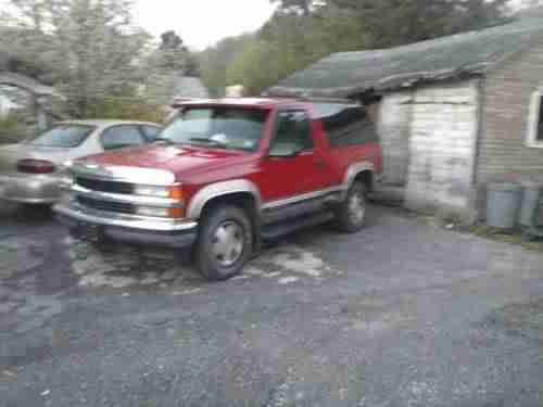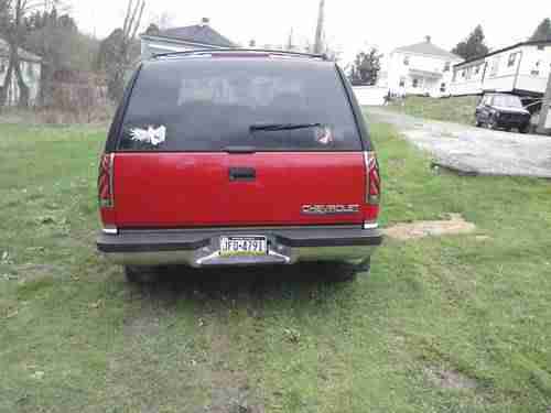 very nice 2 dr tahoe runs and drives great. has a new trans with about 500 miles on it. does need some minor repairs. dent on drivers side. e brake needs hooked up needs a small gas hose replaced very slow leak. windshield has crack. and has minor exhaust leak.