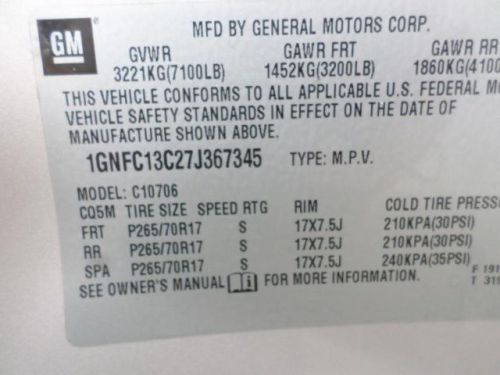 VIN (Vehicle Identification Number): 1GNFC13C27J367345