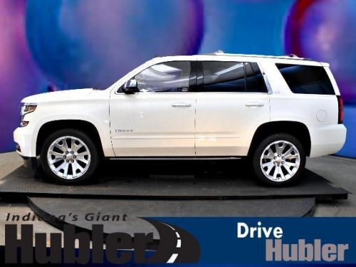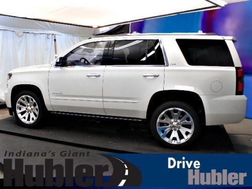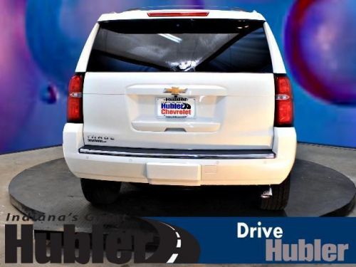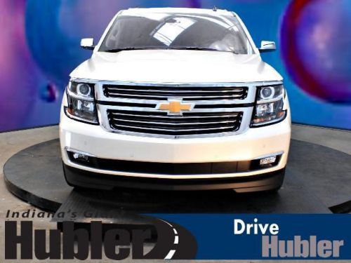 3rd Row Seat, Heated Leather Seats, NAV, Sunroof, DVD, 4x4, Overhead Airbag, TRAILER BRAKE CONTROLLER, INTEGRATED, Quad Seats, Tow Hitch. LTZ trim, White Diamond Tricoat exterior and Leather Trim, Cocoa / Mahagony interior SEE MORE!======KEY FEATURES INCLUDE: Leather Seats, Third Row Seat, 4x4, Quad Bucket Seats, Power Liftgate, Rear Air, Heated Driver Seat, Heated Rear Seat, Cooled Driver Seat, Cooled Rear Seat, Back-Up Camera, Running Boards, Premium Sound System, Onboard Communications System, Trailer Hitch. Keyless Entry, Remote Trunk Release, Steering Wheel Controls, Heated Mirrors, Alarm. ======OPTION PACKAGES: SUN, ENTERTAINMENT AND DESTINATIONS PACKAGE includes additional 9 months of SiriusXM Radio and NavTraffic service, (CF5) power sunroof, (U42) rear seat DVD entertainment system and (IO6) Chevrolet MyLink radio with navigation, ENTERTAINMENT SYSTEM, REAR SEAT, BLU-RAY/DVD with remote control, overhead display, 2 sets of 2-channel wireless infrared headphones and auxiliary audio/video input jacks/SD and USB slots, SUNROOF, POWER, TILT-SLIDING with express-open and close and wind deflector, LPO, POLISHED EXHAUST TIPS, LPO, WHEEL LOCKS, SET OF 4 (DEALER-INSTALLED), LTZ PREFERRED EQUIPMENT GROUP Includes Standard Equipment, TRAILER BRAKE CONTROLLER, INTEGRATED, ENGINE, 5.3L ECOTEC3 V8 WITH ACTIVE FUEL MANAGEMENT, DIRECT INJECTION AND VARIABLE VALVE TIMING includes aluminum block construction with Flex Fuel capability, capable of running on unleaded or up to 85% ethanol (355 hp [265 kW] @ 5600 rpm, 383 lb-ft of torque [518 Nm] @ 4100 rpm; more than 300 lb-ft of torque from 2000 to 5600 rpm) (STD). LTZ with White Diamond Tricoat exterior and Leather Trim, Cocoa / Mahagony interior features a 8 Cylinder Engine with 355 HP at 5600 RPM*. ======BUY FROM AN AWARD WINNING DEALER: After more than 50 years in business Horsepower calculations based on trim engine configuration. Please confirm the accuracy of the included equipment by calling us prior to purchase. FREE Window Tint OR Unlimited 1 Year CarWash Pass with any vehicle purchase.* Central Indiana's LARGEST Chevy Dealer! We have great finance rates and rebate incentives available on our new vehicle inventory! Call us today for the details at 866-797-3549. Our Internet Customer Care Team is on-hand to take your call! *Some restrictions may apply. See dealer for details.