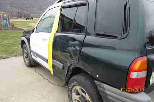 2003 Chevy Tracker. LH side/door/post damage. Replacement LH drivers door (white) installed and old one included. ~<140,000 miles V6, Automatic, A/C. Mechanically sound! 4 "newer tires" slightly over 1 year old. WV state inspected 1/2013. For Sale locally, seller may cancel/refuse sale, if sold.