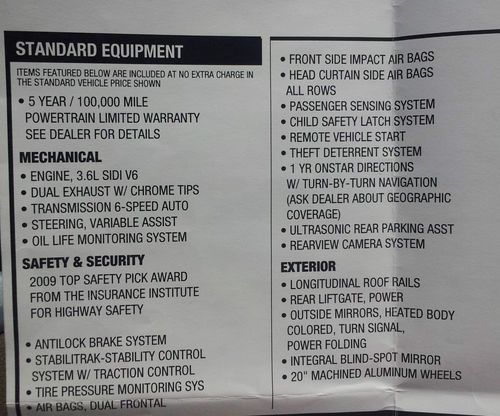 2009 Chevy Traverse, original owner, 102,400 highway miles, great condtion and has every option available and still working including rear dvd, dual moonroofs, navigation, heated seats, remote start, xm radio, 7 passenger seating, all wheel drive, etc. etc. look at window sticker picture for more details, nada value is 21,000.