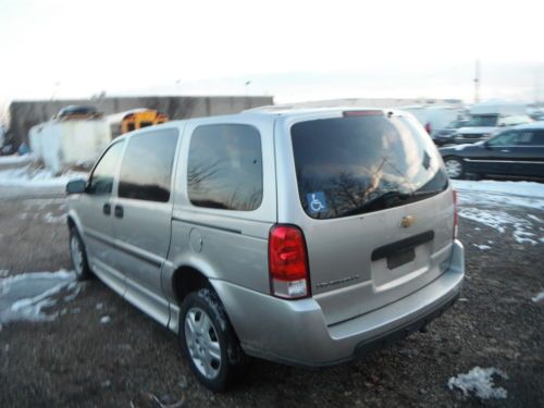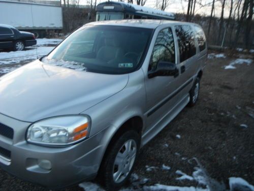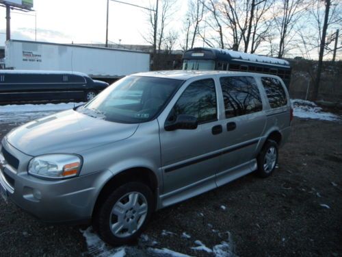 2007 CHEVROLET UPLANDER LS HANDICAP VAN WHEEL CHAIR RAMP SIDE ENTRY 34600 MILES SCOTT 215-280-2120 WE DO TAKE TRADES THIS TRUCK WAS JUST TRADED IN TO A LOCAL MOBILITY DEALER. THIS IS A CHEVROLET UPLANDER LS. IT HAS A SIDE ENTRY RAMP, WITH A THIRD ROW SEAT. THE CLOTH INTERIOR IS IN GREAT SHAPE. THE VAN ONLY HAS 34000 ORIGINAL MILES.THE VAN COMES WITH THE 6-CYLINDER ENGINE AND AUTOMATIC TRANSMISSION. THE RAMP WORKS PERFECT AND IT IS MANUAL LIFT. IT HAS A 6 CYLINDER MOTOR THAT HAS PLENTY OF POWER ALONG WITH GOOD GAS MILEAGE. THE VAN HAS SOME SCRATCHES AND SMALL DINGS ON THE BODY. WE WILL POST MY PICTURES WHEN WE CLEAN THE VAN. IF YOU HAVE A NEED FOR A WHEELCHAIR ACCESSIBLE VEHICLE, THIS IS A GREAT VALUE. TRUCKS LIKE THIS CAN COST UP TO $5OOOO. OUR FEEDBACK SAYS OUR CUSTOMERS ARE SATISFIED 100% OF THE TIME. CALL US AND MAKE A DEAL. WE WILL SHIP IT ANYWHERE. CALL SCOTT AT 215-280-2120