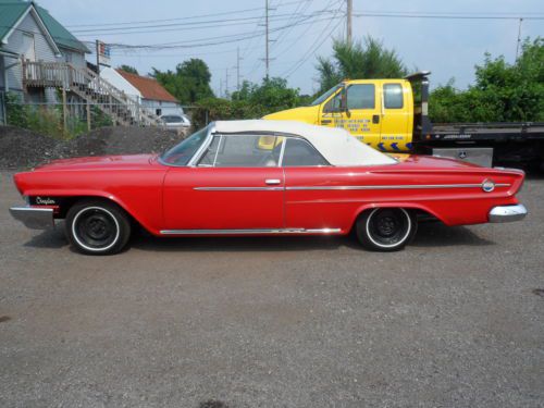 1962 CHRYSLER 300 CONVERTIBLE, IN REALLY GOOD CONDITION INSIDE AND OUT, RUNS AND DRIVES VERY WELL, 106K ACTUAL MILES, 413 V8 MOTOR, 3SPD FACTORY TRANS ON THE FLOOR, ALL ORIGINAL, PLEASE CALL DICK AT 419-376-3862 WITH ANY QUESTIONS, PLEASE DO NOT EMAIL AS HE DOES NOT KNOW MUCH ABOUT COMPUTERS, SOLD AS-IS, AND YOU'RE MORE THAN WELCOME TO COME AND DRIVE IT BEFORE YOU BID