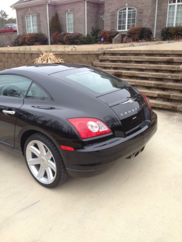Chrysler 2007 Crossfire, 215-horsepower, 3.2L V6 , automatic transmission with AutoStick manual selection.There are two body styles available. The coupe has a classic, flowing shape with an especially distinctive boattail rear-end design,The Crossfire has a very stiff body structure that Chrysler claims is stiffer than the Porsche Boxster's, along with four-wheel anti-lock brakes and a sport-tuned suspension. The steering has a recirculating ball design. Driver and passenger knee air bags are standard, along with electronic stability control for increased safety during emergency maneuvers or on slippery surfaces. Limited models add more sound insulation, heated leather seats, power folding heated mirrors, and an Infinity Modulus six-speaker sound system. The Limited also gets satin silver accents, white-on-black gauges, and metallic finish for the center console, and the head restraints are embossed with the Chrysler badge, high-speed, Z-rated performance tires, 18-inch in front and 19-inch in rear. Has an automatic rear wing that deploys itself at certain highway speeds. I bought this car with less than 2000 miles on it , has been pampered and kept in heated and cooled garage. Would not drive this car on rainy days. it is immaculate. impossible to find a 2007 Limited with these miles.Beautiful black with two-tone black/gray leather. LOW RESERVE if you have less than 20 feedbacks do not bid on this car without permission from me or your bid will be cancelled. any questions call 205-269-2799 Have Title in Hand