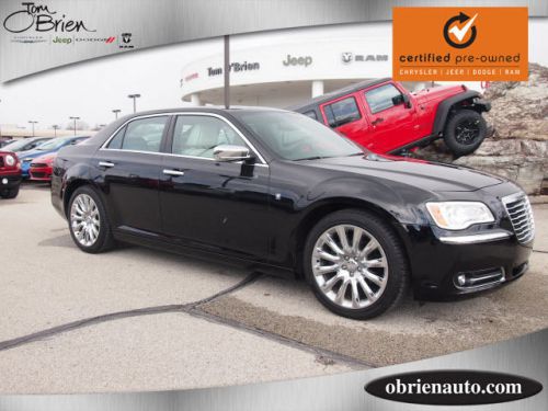 JUST REPRICED FROM $29,988, FUEL EFFICIENT 31 MPG Hwy/19 MPG City! Chrysler Certified, CARFAX 1-Owner, GREAT MILES 15,916! Heated Leather Seats, Bluetooth, iPod/MP3 Input, CD Player, Dual Zone A/C, Keyless Start, Satellite Radio READ MORE!======KEY FEATURES INCLUDE: Heated Driver Seat, Satellite Radio, iPod/MP3 Input, Bluetooth, CD Player, Keyless Start, Dual Zone A/C, Heated Seats MP3 Player, Remote Trunk Release, Keyless Entry, Steering Wheel Controls, Child Safety Locks. ======OPTION PACKAGES: 22M CUSTOMER PREFERRED ORDER SELECTION PKG 3.6L V6 engine, 8-speed auto trans, 20 x 8.0 aluminum chrome wheels, P245/45R20 all-season performance BSW tires, 4-wheel independent touring suspension, bright chrome exterior accents, bright door handles, chrome exterior mirrors, chrome blade grille w/chrome surround, compact spare tire, pwr heated mirrors, premium floor mats w/300 logo, two-tone leather trimmed seats, DUAL-PANE PANORAMIC SUNROOF, 8-SPEED AUTOMATIC TRANSMISSION (STD), 3.6L V6 VVT ENGINE (STD). ======EXPERTS CONCLUDE: The last bastion of the full-size rear-drive (or AWD) American sedan, the 300 is comfortable, refined, and stylish. -CarAndDriver.com. Great Gas Mileage: 31 MPG Hwy. ======EXCELLENT VALUE: Reduced from $29, 988. ======PURCHASE WITH CONFIDENCE: 7-Year/100, 000-Mile Powertrain warranty, 3-Month/3, 000-Mile Maximum Care Warranty, Rigorous 125-Point Inspection and Reconditioning, 24-Hour Roadside Assistance, 24-Hour Towing, Carfax Vehicle History Report, Rental car Allowance, Lifetime Certified Warranty Upgrades Available ======WHY BUY FROM US: Huge Selection - Low Prices - Award Winning Service. Let our Family work for you - Since 1933! Pricing analysis performed on 6/18/2014. Fuel economy calculations based on original manufacturer data for trim engine configuration. Please confirm the accuracy of the included equipment by calling us prior to purchase. If saving money is important to you, visit Tom O'Brien - Indianapolis, Indy's Preferred Chrysler Jeep Dodge Ram dealer! As the largest CJDR dealer in Indiana, Tom O'Brien always has a great selection of new and used vehicles with low prices and professional customer service. Visit Tom O'Brien Chrysler Jeep Dodge Ram - Indianapolis today to see how "Our Family Works for You! Since 1933."