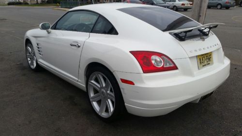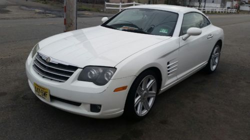 up for sale this week 2004 crossfire in white, 103,000 miles,6 cylinder ,auto,gray leather, power doors,seats, weve installed a new battery and it runs strong, has a few scratches on the paint rear drivers side bumperand a ding on pass door.also the hood latch now does not lock after we opened it no check engine light but does have the esp light on,brakes will need to be gone over as the car has been sitting for about a year now this car as well has a clean nj title picked up and paid for within 1 week of auctions end. please ask all questions before bidding . i will help in loading the car,but will not ship it is your responsibility to make all arrangements.