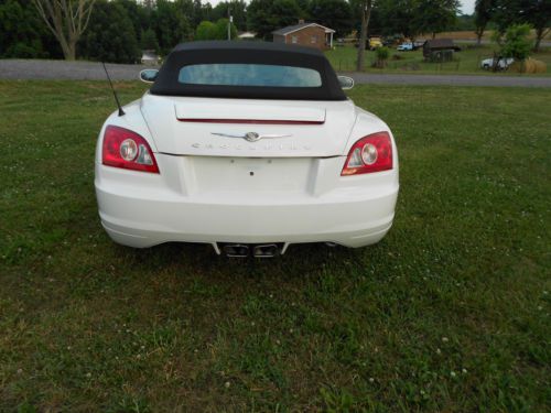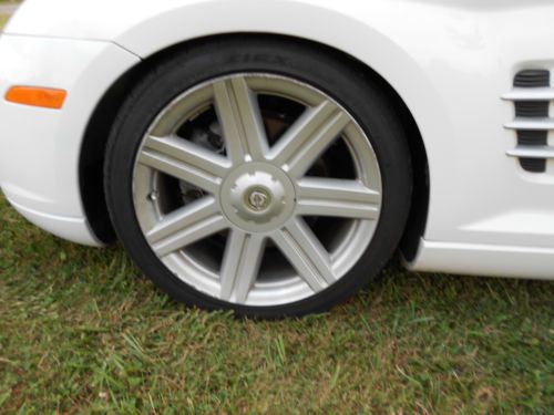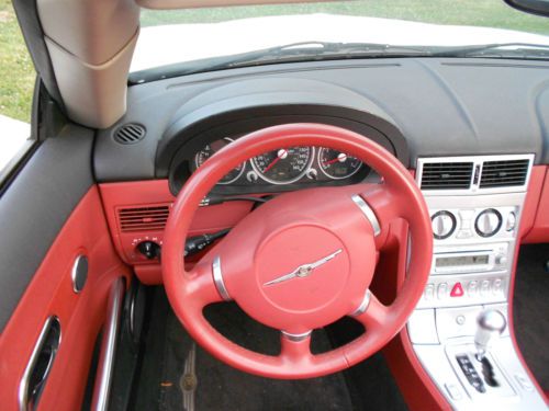 05 CHRYSLER CROSSFIRE CONVERTABLE WHITE WITH 2 TONE INTERIOR. VERY NICE CLEAN CAR. LOOK AT ALL PICS I HAVE INCLUDED A BEFORE PIC. IT WAS HIT IN FRONT . I REPLACED HOOD GRILLE FRONT BUMPER COVER AND HEADLIGHTS. THE 2 FRONT FENDERS WERE NOT PAINTED , THERE WAS NO DAMAGE TO THEM. IT WAS NOT PUT ON FRAME MACHINE. I DROVE TO BODY SHOP. THE ONLY FLAWS ARE THE HEADLIGHTS ARE FOGGED OVER A LITTLE AND THE RIMS ON OUTER EDGES ARE SCRAPPED UP A LITTLE, I GUESS FROM CURB PARKING. ALSO THE AIR BAGS DID DEPLOY, BUT THEY WERE REPLACED AND RESET BY THE CHRYSLER DEALERSHIP.