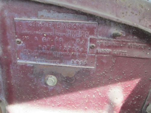 this is a solid 1952 Chrysler imperial crown edition 2 door hard top. it has the original 331 hemi with 2 bbl carb and original transmission. The car does need some work. There is surface rust , but nothing major. this is a extremely rare car only 256 produced in 1952. The body is straight, will need brakes, tires, tune up. floors and truck are in good shape with only minor rust. interior is complete, I think it has the coolest gauge I've ever seen. It still has the factory jack and a few spare parts in the trunk. car has been stored inside up till about 6 months ago .all the glass is good except drivers door. this was going to be a old school hot rod project for me, but unfortunately I don't have to time to do it. this is a perfect car to restore or build a cool rat hod. please feel free to call or text with any questions, 5737786368
