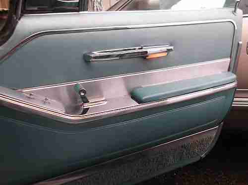 I bought this beautiful car in 1990, from the original owner. I was looking at the car for my boyfriend, but just had to have her for myself. This has always been my dream car. Every summer, she was my transportation. The luxurious interior is my favorite part of the car. The Turquoise is not faded. The wonderful headliner is perfect. The dash is gorgeous, with no cracks or scratches, including the woodwork. All of the interior chrome is fabulous; & the lights all are working. The carpet is great & all original. The leather & cloth seats are as perfect as when I bought the car, front & back, with the pull down arm rests. The clock works now & then, just to tease me. The radio plays great AM & the retractable antenna operates. All of the glass on the car is original & without breakage.The car had been sitting most of the past four years, with me starting her regularly, & she never sat in the sun. The car just had a tune up & a new fuel pump & is running great as always. The beautiful 413 engine is all original, with a new hose & battery some time ago & the recent tune up. She runs like a dream & is powerful. The original exterior paint still looks good, with no dents, but there are small nicks & also a few very tiny rust spots, smaller than your pencil eraser. The tires need replacement. All four original Wheel Covers are in great condition & the exterior Chrome is all good. The trunk was always in need of a hard close. Water had sat in the trunk when I hadn't been opening it & the carpet had to be removed, but the whole of the trunk is still good. There is a line of rust under the top of the lid, where the rubber had failed. The original carpeted cover for the spare tire is intact. The car has traveled perfectly to Vancouver, BC a few times. We have been enjoying an unexpected sunny day, perfect for going for a drive. But, the clouds moved in before I took my photos & the new ones are dark! But, you do get to see the other side of the car. Please feel free to email me if you have any questions & thanks for your interest.