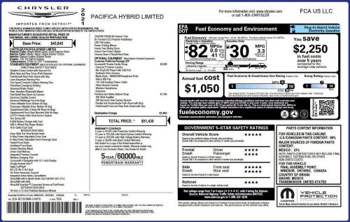 2021 chrysler pacifica hybrid limited(US $24,551.10)