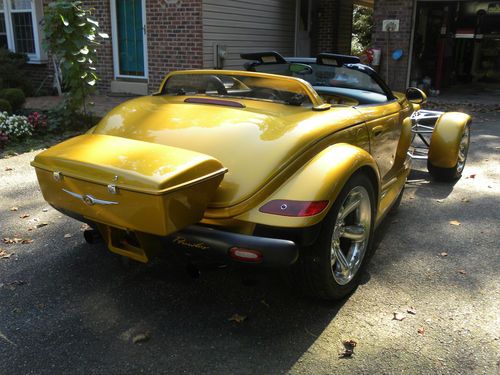 UP FOR SALE IS A 2002 CHRYSLER PROWLER CONVERTIBLE WITH ONLY 2,800 MILES. ONE OF THE MOST STRIKING DESIGN FEATURES OF THE PROWLER ARE THE OPEN, INDY RACER STYLE FRONT WHEELS.