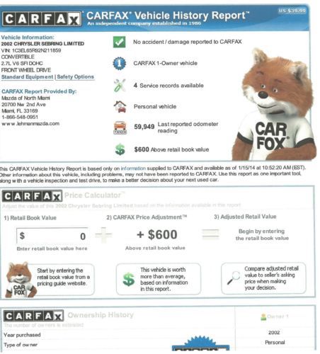 2002 Sebring Limited Convertible Carfax Certified Gorgeous One Florida Owner on 2040-cars