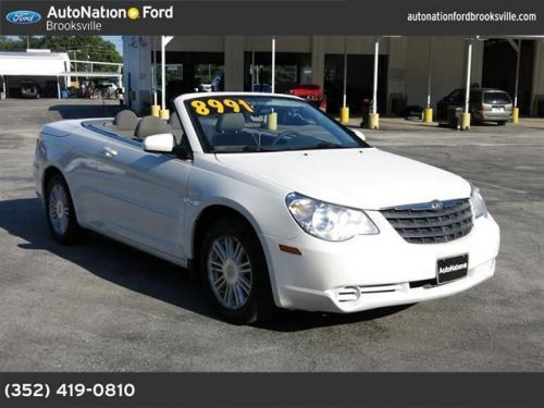 You can find this 2008 Chrysler Sebring Touring and many others like it at AutoNation Ford Brooksville. Only the CARFAX Buyback Guarantee can offer you the built-in peace of mind of knowing you made the right purchase. Soak up the sun and have some fun in this outstanding Chrysler Sebring convertible. At AutoNation Ford Brooksville, we strive to provide you with the quality an excellence in a vehicle that you truly deserve and with the Stone White on Slate Gray color combination, this Sebring Touring surpasses expectations. More information about the 2008 Chrysler Sebring: The 2008 Chrysler Sebring sedan combines a low entry price with styling that's somewhat more elegant than most vehicles in its class, along with many features not usually found in its price range. The new Limited AWD model also offers an interesting combination of all-weather capability and sporty handling. As for the convertible, with vinyl, cloth, or retractable hard tops available, it has more top options than any other open-air model. It also has one of the most spacious back seats for legroom, among convertibles, and with its completely redesigned interior it has a more sophisticated look than before. This model sets itself apart with available interior conveniences, new AWD model, Affordability, standout, elegant styling, and roomy interior for a convertible. Please call888-454-6159, Internet Sales Manager, for special Pricing. No combined discounts or sales. Good Credit, Bad Credit, No Credit, No Problem!