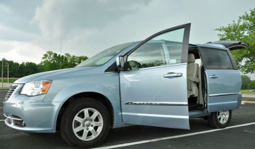 Offered by Kenny's Auto Sales is a 2013 Dodge Chrysler Town And Country Touring Edition Rear Loading Wheelchair Mobility Van. The Rear Wheelchair Passenger Area was designed for commercial service and has never been used. It is very nice Light Blue exterior Color with a Beige Leather Interior and Black Carpeting with middle row Side Mounted Leather Jump Seats in the Wheelchair Bay and a manually operated rear Wheelchair Ramp with a "State of the Art" single point rear ramp release and Folding Ramp Stow Away Systethat folds to the floor. It has 35800 Original miles and Runs and Drives 100%. All on-board systems have been checked and are in good operating Condition. It features a smooth running 3.6L Flex Fuel V-6, Automatic Transmission, Front & Rear Air Conditioning and Heat, Power Drivers Seat, Power Windows including Power Side Door Windows, Power Door Locks with Remote Entry with Two Key Fob Clickers that operates the Power Side Doors and Power Rear Hatch, Am Fm Satellite Cd Player, Factory Ceiling Mounted Rear Passenger DVD Player, Back Up Camera, Tilt Wheel, Tire Pressure Monitoring System,Driver Information Center and Cruise Control. The Tires, Brakes and Suspension have been checked are in good condition and all tires have 6/32 or better Tread left. The Van has just been serviced and is ready to travel. Please look at the Pictures, This is a gorgeous Van that is in very nice condition! Please call Kenny at 215-938-9333 for more information on this Van or the many other AMT Vans that we have in Stock, Thank you for Looking!