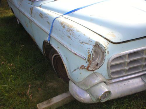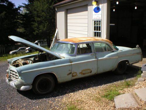 UP FOR SALE--- 1956 CHRYSLER IMPERIAL 4 DOOR. VEHICLE IS A BARN FIND AND WOULD BE A GREAT CAR TO RESTORE. IT HAS A 354 HEMI ENGINE AMD THE MOTOR WILL TURN OVER. THE TRANSMISSION IS MISSING FROM THE CAR. TITLE TO THE CAR HAS 100,665K MILES ON IT. THE VIN IS C561847. VEHICLE IS SOLD AS IS. I WILL BE HAPPY TO E MAIL ANY ADDITIONAL PICTURES OF THE IMPERIAL IF YOU WISH.