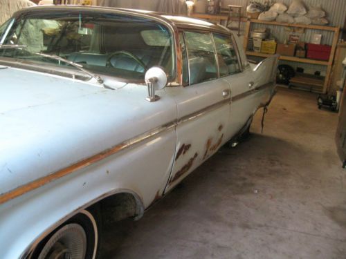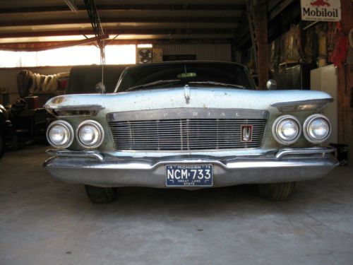 1961 CHRYSLER IMPERIAL LEBARON BOUGHT FROM THE ORIGINAL OWNER IN 1969 AND HAS SAT IN STORAGE SINCE. THIS IS BEING OFFERED AS A PARTS CAR BECAUSE OF EXCESSIVE UNDER BODY RUST. THIS IS A VERY RARE CAR ONLY 1200 LEBARON WERE BUILT IN 1961. THE INTERIOR IS IN VERY GOOD CONDITION, NICE LEATHER AND CLOTH SEATS. THIS WOULD MAKE A PREFECT DONNOR VEHICLE TO TURN A 61 IMPERIAL INTO A LEBARON BECAUSE ALL THE LEBAEON TRIM IS IN VERY GOOD CONDITION. ONLY TWO HUB CAPS AND NO KEYS, SOLD WITH CLEAR MICHIGAN TITLE. ENGINE HAS NOT RUN SINCE 1969. CALL OR EMAIL ANY QUESTIONS, THANKS PHIL 906-458-4102