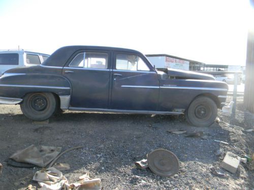 1948 CHRYSLER NEW-YORKER... THIS CAR WOULD BE AN AWESOME PROJECT FOR SOMEONE. NOT MUCH TO SAY ABOUT THE CAR, A PICTURE IS WORTH MORE THAN 1000 WORDS! BEST WAY TO DESCRIBE THIS CAR IS TO LOOK AT THE PICTURES, IT NEEDS WORK BUT IT IS 95% COMPLETE. THIS CAR DOES NOT RUN OR DRIVE. IT HAS BEEN SITTING FOR A FEW YEARS AND I REALLY DON'T KNOW ANYTHING ABOUT THE MECHANICAL CONDITIONS. LIKE I SAID IT'S A PROJECT AND NEEDS TOTAL RESTORATION. IT HAS POTENTIAL AND IT HAS ALREADY BEEN CONVERTED TO A SMALL BLOCK CHEVY THAT COULD BE FOUND IN ANY JUNK YARD FOR A FEW HUNDRED RUNNING. OR MAYBE YOU CAN FIRE THIS ONE UP. IT HAS A CLEAN MISSOURI TITLE, ALL THE GLASS IS THERE EXCEPT FOR DRIVER REAR. IT'S MISSING 2 HUBCAPS AND ALL TIRES HOLD AIR, HOOD NEEDS WD-40 TO MAKE THE HINGES LOSE AND BE ABLE TO CLOSE .ASK FOR PICTURES OR QUESTIONS IF YOU HAVE ANY CONCERNS. DON'T ASSUME AND KEEP IT SAFE!!!! I WILL ANSWER ALL QUESTIONS TO THE BEST OF MY KNOWLEDGE. THIS CAR IS SOLD AS IS WHERE IS WITH NO WARRANTIES OF ANY KIND OR PROMISES. YOU GET WHAT YOU SEE AND THAT'S IT. BUYER IS RESPONSIBLE FOR SHIPPING AND TRANSPORT FEES. YOU ARE WELCOME TO COME SEE THE CAR IN PERSON OR SEND AN EBAY INSPECTOR TO CHECK IT OUT. ANY QUESTIONS CONTACT ME BY EBAY OR CALL ME 915-873-2472 CAR IS LOCATED IN CANUTILLO TX AREA 79935. THERE IS A $500 NON-REFUNDABLE DEPOSIT OWED 24 HRS AFTER BUYING CAR AND BALANCE WITHIN 7 DAYS OR MORE IF WE MAKE ARRANGEMENTS I WILL HELP AS MUCH AS I CAN TO COORDINATE THINGS WITH TRANSPORT SERVICE OR YOU IF YOUR COMING. THANKS HAVE A NICE DAY AND GOOD LUCK !!!!!!