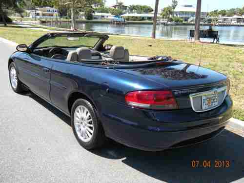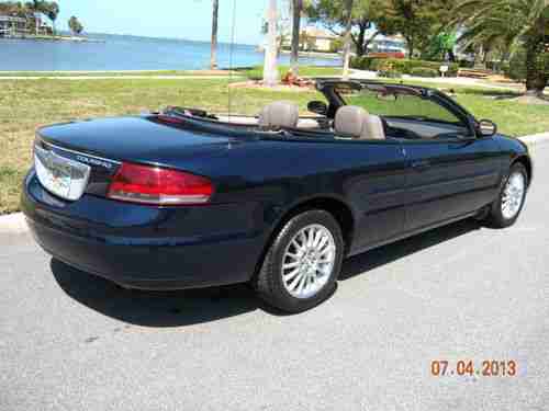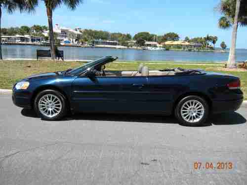 UP FOR AUCTION WE HAVE A VERY CLEAN 2006 CHRYSLER SEBRING TOURING CONVERTIBLE..2.7 LITER V6..GETS ABOUT 30 MPG DOWN THE FREEWAY!!..BRAND NEW TAN CLOTH TOP ($1,500.00)..FACTORY POWER CONVERTIBLE TOP..ONLY 78,199 MILES FROM NEW...SEATS SHOW VERY LITTLE WEAR..NO RIPS/TEARS/HOLES..THIS SEBRING DRIVES GREAT!! ..BALTIC BLUE METALLIC PAINT IS EXCEPTIONALLY NICE..NO ACCIDENTS..NO ADVERSE HISTORY OF ANY KIND..TAN CLOTH CONVERTIBLE TOP JUST REPLACED BY ME LESS THAN 1 WEEK AGO ($1,500.00)....PERFECT CONDITION..GLASS REAR WINDOW WITH DEFROSTER..FUEL/TRIP COMPUTER..TRACTION CONTROL..BUILT IN GARAGE DOOR OPENERS (3)