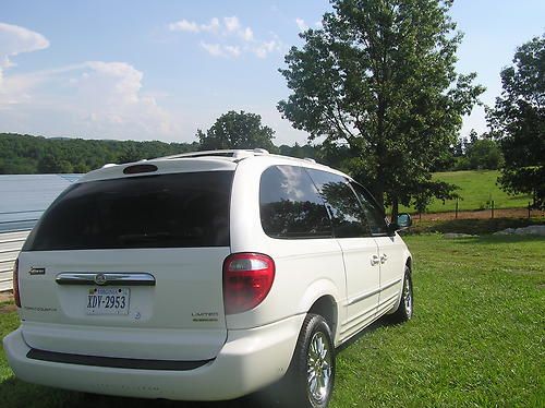 I am selling my 2002 Chrsyler Town & Country mini van. The van is in excellent condition and runs well. The van has a 123,490 miles on it and four brand new all season tires with less than 300 miles on the tires. The seats do not have any tears and are power and has bucket seats in the front and middle row and a full bench seat for the back seat. The van will seat seven comfortably. The van has two power doors on the side and the hatch will open by remote or button inside. It has a CD player and cassette and am, fm radio which all work fine. The reason for selling I, bought another automobile and no longer need the van. If interested please email at cathysue1958@fairpoint.net or call 434-324-4018. If no answer please leave message.
