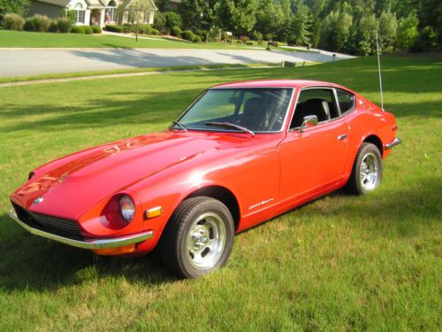 This is your chance to own one of the nicest 240Z's in the country. This car started life in New Mexico and was brought to Georgia a few years ago. I have restored this car to be factory correct down to the smallest detail other than a small hand full of items. Most notably but not limited to is the bumpers and carbs are from a 72. The valve cover is painted with a red wrinkle paint and the smog pump was not put back on. The 73 240Z had some features that the earlier cars didn't have which make it a nicer car to drive. The seat belts retract opposed to the pull tight type. The heater control panel is back lit and the seat backs adjust much easier with a lever opposed to the knob that the early cars had. The engine, radiator, carbs and the mechanical portion of the wipers have all been rebuilt. It runs and drives better than it did when it was new. The following is all new. Paint, all rubber seals, windshield, tires, brake calipers, master cylinder, struts, suspension bushings, clutch master cylinder, slave cylinder, leather seats (not vinyl), door panels, all the vinyl, all the interior panels, The carpets are not new but they were replaced and are in good condition. The pictures don't do it justice but everything in the engine compartment has be restored to like new and is show car worthy. You won't be disappointed. Every time I open the hood the first thing everyone says is Wow! The odometer shows 65388 but the mileage is exempt. The car has roughly 1000 miles since the restoration completion.