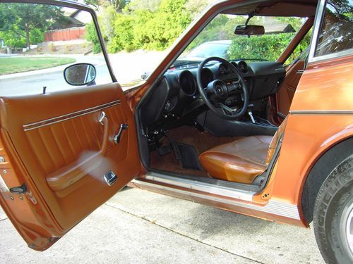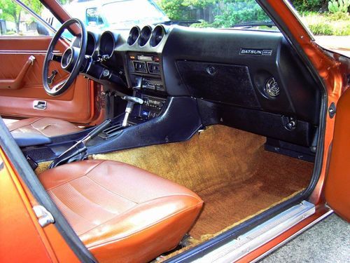 This Z is an incredibly well preserved 70's time capsule. One owner since 1977,completely unmodified, impecably maintained, and always garage kept. 100% documentation (including a log of every fuel tank fill up) and all maintenance records dating back to time of purchase included. This car has always been (lightly) driven regularly, and I have yet to see a better example of an unmodified '77 daily driver in this condition. Actual mileage is 109513 - 1 roll over at 99,999 + the 9514 you see on the odometer. Be skeptical of the sub 50k mileage figures stated on many cars of this vintage listed for sale. 100% stock L28 OHC fuel injected V6, rare 3 spd auto trans, new battery, recent routine maintenance, 195/70 14 Michelins with original wheel covers and center caps, rare lower body trim panels, and original factory A/C cold & fully operational. This car is currently registered and passed California's super stringent enhanced smog test in Feb 2013. This is a clear testament to the fine condition of the engine, emissions, and exhaust system. Factory metallic copper paint with pin striping is almost flawless. Looks incredible even on the overcast day the attached pics were taken. Just one small anamolous area of rust behind the pass. side wheel. The rest of the body shows no signs of rust. All glass is perfect. The interior is all original and the door panels, cargo area, headliner, original(working) AM/FM radio,original carpet and passenger seat look factory fresh. The dash pad has the typical splitting above the center gauges seen in most vintage Z's, and there are tears on the original driver's seat. Climate control currently doesn't switch over to heat or defrost. This might be repaired prior to sale.
