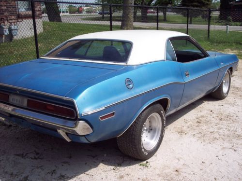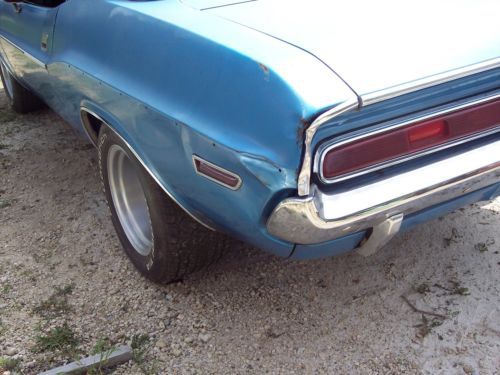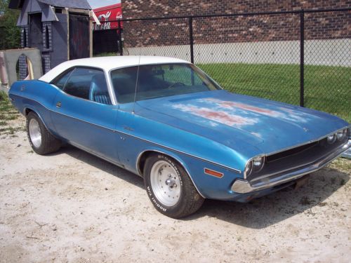 1970 CHALLENGER VEHICLE IS FROM TEMPE ARIZONIA WHEN NEW. I HAVE THE ORIGINAL WARRANTY PAPERWORK WHICH HAS THE DATE AND THE BUYER INFO. BORN A MODEST 318 WITH AUTO ON COLUMN, NOW A 383 WITH A 727 AUTO AND 8 3/4 REAR. HAS A CLEAR ILLINOIS TITLE. I DO NOT KNOW THE HISTORY OF WHEN THE 383 WAS INSTALLED. IT APPEARS THE 383 HAS BEEN REBUILT AND PAINTED A FRESH COAT OF HEMI ORANGE. AFB CARB ON TOP MAKES IT RUMBLE LIKE IT SHOULD. STILL HAS THE A/C BOX AND BLOWER AND MOST OF DUCTING WITH THE VENTS. THE A/C LINES AND WATER VALVE ARE NOT PRESANT. NO CONDENSOR EITHER. THE CAR APPEARS TO BE IN THE FACTORY ORIGINAL PAINT. BY THE PICTURES IT IS CLEAR THE PAINT IS VERY FADED. I WAS TOLD THE CAR IS SOMEWHAT RARE BECAUSE OF THE WHITE PAINTED TOP. NO VINYL. CHROME IS IN RELATIVELY GOOD SHAPE FOR ITS AGE AND APPEARS THE VEHICLE BODY HAS NOT BEEN DISSASSEMBLED. ALL BODY PANELS LOOK LIKE THE ORIGINALS. ALL BODY NUMBERS MATCH. STILL WEARS THE FACTORY DRIVERS DOOR STICKER. THE ENGINE RUNS VERY GOOD AND TRANS WORKS FINE. THE BRAKES ARE WEAK MAYBE NEED TO BE BLED BUT DO WORK. GRILL IS VERY NICE EXCEPT FOR THE PASSENGER HEADLAMP DOOR ON ITS TOP IS DINGED BAD. BLUE INTERIOR WITH NEWER CARPET. DOOR AND REAR SIDE INTERIOR PANELS ARE BLACK. WRONG COLOR BUT NICE SHAPE.. DASH PAD NEEDS TO BE REPAIRED . STANDARD GUAGES WITH 95600 MILES. HAS VERY NEW TIRES WITH C L WHEELS I THINK THEY ARE REAL (CENTERLINES) REAR TIRES ARE 275-50-15 AND LOOK IMPRESSIVELY BIG FROM THE BACK. I DO NOT KNOW THE REAR GEAR RATIO YET. REAR RAILS ARE AWESOME SHAPE MOST OF THE BODY IS VERY GOOD ALTHOUGH IT DOES NEED SOME PATCH WORK ON VERY BOTTOM 1/4S AND FENDERS.. TRUNK FLOOR MIGHT BE A GOOD CANDIDATE FOR REPLACEMENT UNLESS YOU ARE PATIENT ENOUGH TO FILL IN SOME HOLES. THIS WILL MAKE A GREAT DIVER FOR NOW WITH SOME BRAKE WORK,OR A VERY SOLID START TO SHOW PIECE. I AM A CUDA GUY AND ALWAYS WANT THEM MORE. PLEASE CALL ME IF YOU HAVE QUESTIONS. I DO NOT HAVE A SMART PHONE AND CANT GET BACK ANSWERS TILL AFTER WORK. PLEASE CALL ANYTIME FROM 8AM TO 9 PM ANY DAY RICH 815-520-3227 AND RTS.1@COMCAST.NET I RESERVE THE RIGHT TO END AUCTION EARLY DUE TO I HAVE THE CAR LISTED LOCALLY. VISITING CAR IN PERSON IS ALWAYS BEST. COME LOOK AND BID IF YOU DARE. PLEASE BID TO WIN AND OWN. ASK IF UNSURE DO NOT WAIT AFTER BIDDING IS OVER TO ASK QUESTIONS. I WILL TELL YOU MY RESERVE ONLY IF YOU COME AND LOOK AT CAR IN PERSON. |