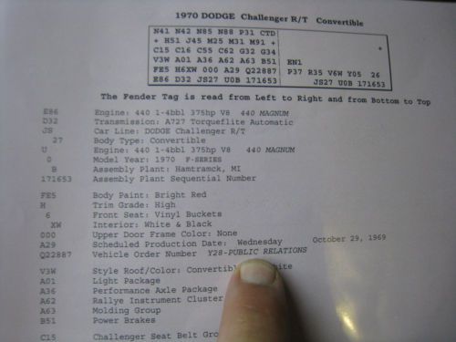 This is not only one of the very rare (1 of 127) 1970 Challenger R/T convertibles built with a 440 Magnum & 727 auto., it has the very desirable "Q" on the original fender tag which makes it a very rare "PUBLIC RELATIONS CAR" & highly collectible . There were only about 5 of these built!
