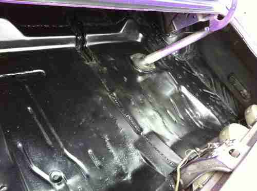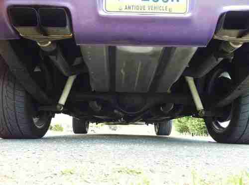 The pictures make the car look a little blue, but make no mistake she is plum crazy purple, its eridessant and beautiful, slick and glossy, a very pretty car, the body is nice on the car, has a few chips it gets driven, the top is in perfect shape, all the glass is tinted, the bumpers are original and show a little wear, underside of the car is very nice.