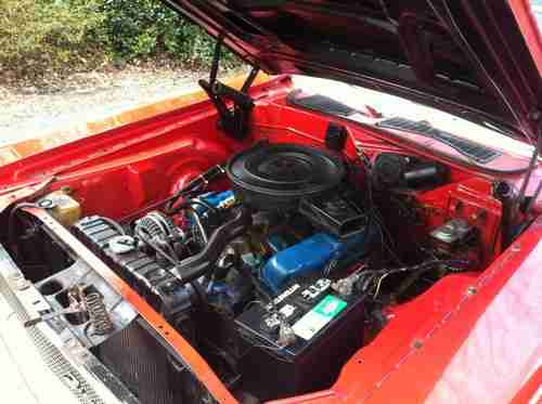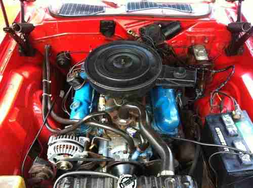 The motor in the car is a 318, clean as a bell inside, i had the valve covers and intake gaskets replaced when they wher off i took a picture of the motor inside, super clean inside and in great shape, the car has a new carb. new alternator, hoses, plugs and wires, distributor cap and rotor, all the brakes have been gone through and new master cyl. the car is in pretty good shape. the trans is a automatic, with a slap stick factory shifter. The dodge has power steering and manuel brakes.