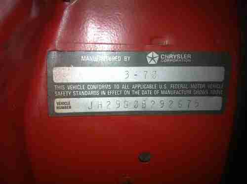 The door vin sticker is in place, the vin plate is on the dash and the buck tag is under the hood. all matching, the car is missing a few sticks of trim, and needs a vinyl top installed the roof is in great shape only one 50 cent piece spot of rust, (see video)