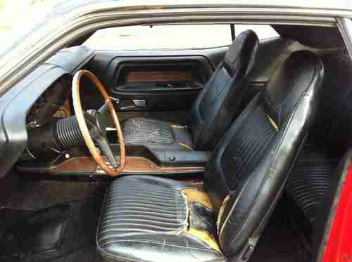 The interior in the car is pretty complete, the dodge has the factory interior, overhead console, has a slap stik shifter and floor console. the front seats work well the frames are good cores just need recovered, and the head liner needs replaced, back seat is in good shape. also door panels and rear interior panels are in great shape.