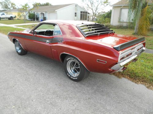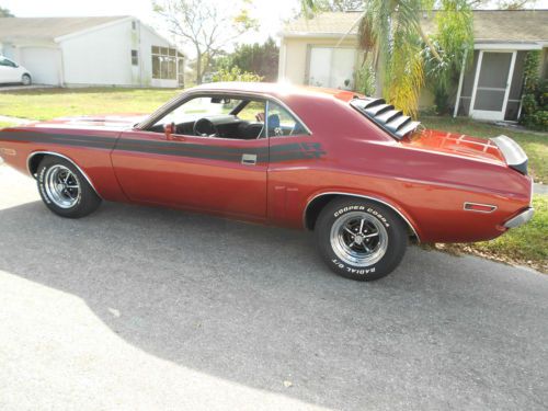 Restored 71 Challenger R/T tribute. Paint and body done 8 years ago and still has a great shine, straight body and nice panel alignment. Paint is a copper metallic with original style rear window louvers, new 15" magnum 500's with brand new tires. Chrome and stainless are in excellent condition.